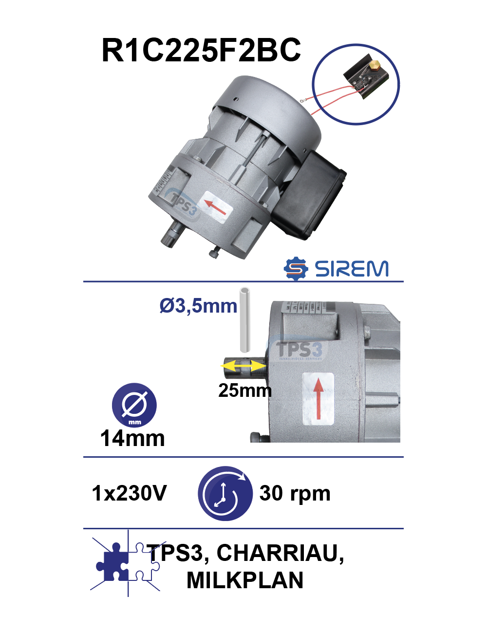 SIREM R1C245N2BR motors ar reduktoru, 25 apgr./min, 230 V