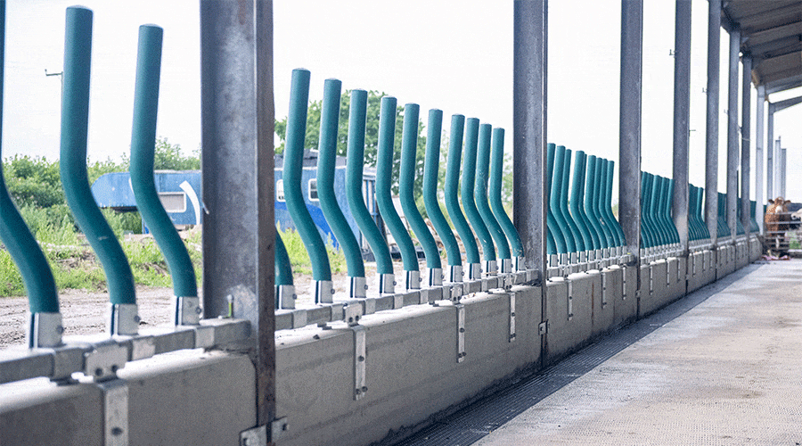 cattle feed rail system, Easyfix Evolve Feed Rail, cow feed barrier, dairy cow feeding system, cattle welfare equipment, feed table barrier, dairy farm equipment
