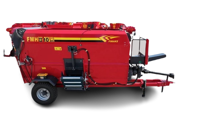 Fimaks horizontālajiem barības maisītājam standarta aprīkojumā ir hidrauliskā sistēma, sānu konveijers un iekraušanas kauss.