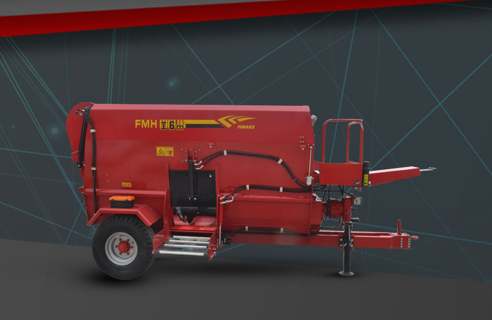 Fimaks horizontālajiem barības maisītājam standarta aprīkojumā ir hidrauliskā sistēma, sānu konveijers un iekraušanas kauss.