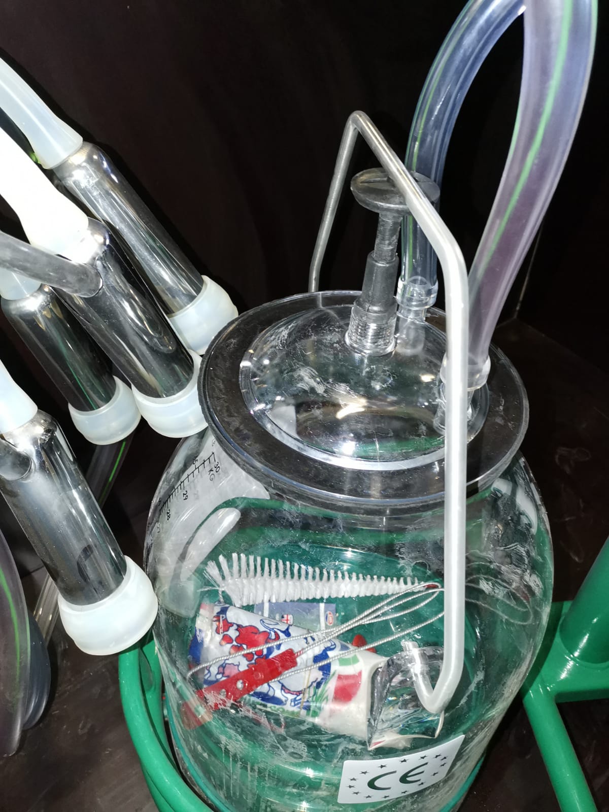 pārvietojama slaukšanas iekārta, govju slaukšanas aprīkojums, viena ķekara slaukšanas sistēma, PVC kanna ar mērskalu, sausais vakuumsūknis, slaukšanas iekārta 220V, maza slaukšanas iekārta, slaukšanas pulsators 60/40, silikona pupu gumijas, liellopu slaukšana mājas saimniecībām, modulis ar otru ķekaru