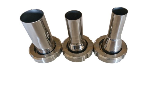 piena tvertnes pieslēgums, DN50 savienojums, nerūsējošais tērauds, piena dzesētājs, cauruļu pieslēgums, uzpilde no apakšas, pārtikas rūpniecība, lopkopība, Ø32 mm caurule, pieslēguma garums 130 mm, higiēnisks savienojums