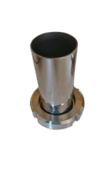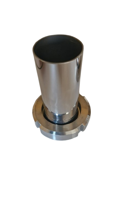 piena tvertnes pieslēgums, DN50 savienojums, nerūsējošais tērauds, piena dzesētājs, cauruļu pieslēgums, uzpilde no apakšas, pārtikas rūpniecība, lopkopība, Ø50 mm caurule, pieslēguma garums 130 mm, higiēnisks savienojums