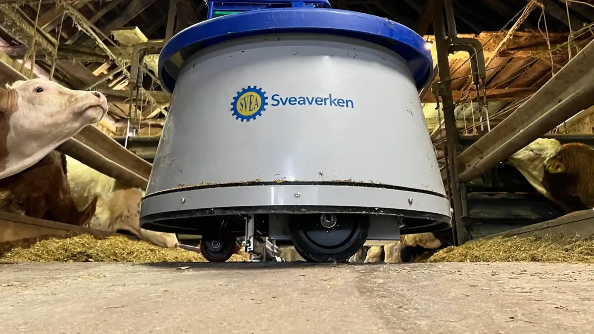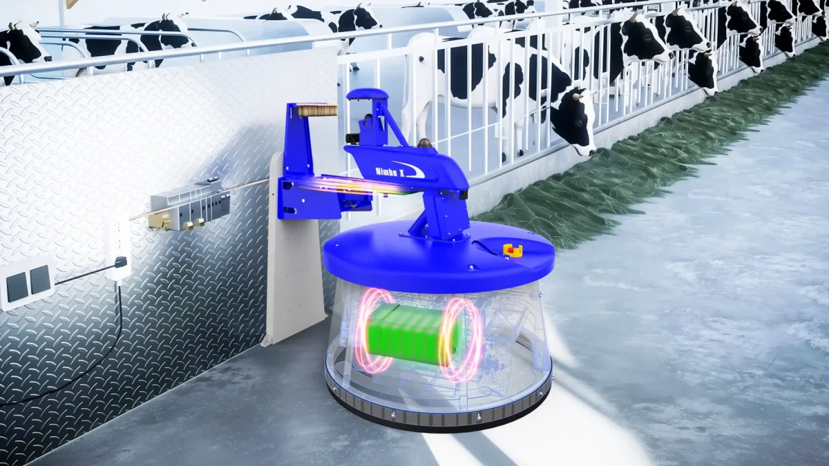 barības piestūmējs robots, barības piestūmējs govīm, Nimbo X robots, fermas automatizācija, liellopu barības robots, kūts robots, 3D LiDAR robots, piestūmējs saimniecībai, barības robots piensaimniecībām, govju barības robots