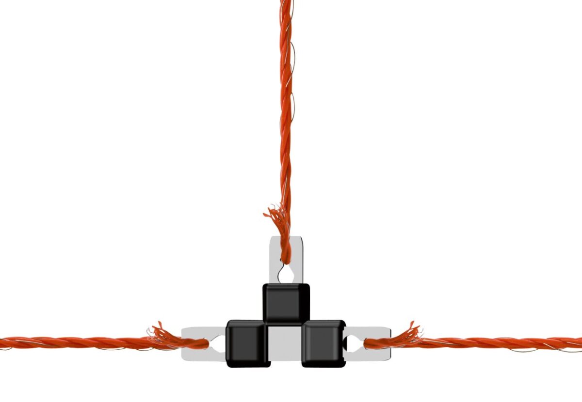 t-veida savienojums ganību auklai, Litzclip savienotājs, žoga tīkla savienojums, elektriskā gana stiprinājums, polistirola savienotājs, ganību žoga piederumi, žoga savienojums Ø 3 mm
