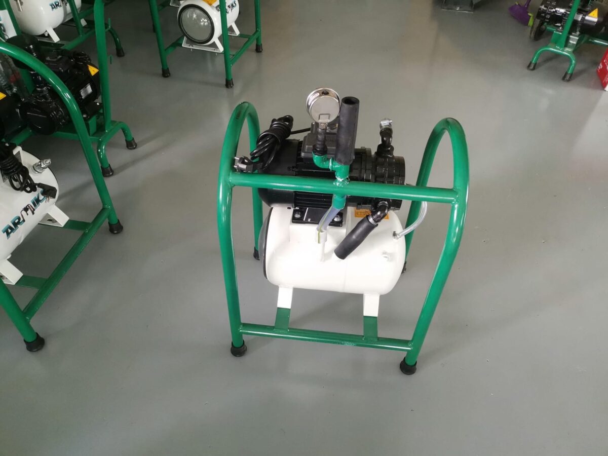 Jaudīgs vakuumsūknis ar eļļas recirkulācijas sistēmu, 0.55 kW motoru un apgriezieniem 1400 rpm. Ražība 220 L/min, lāpstiņu diametrs 70 mm. Ierīce darbojas ar taisno piedziņu no elektromotora bez siksnām, nodrošinot uzticamu un stabilu darbību.