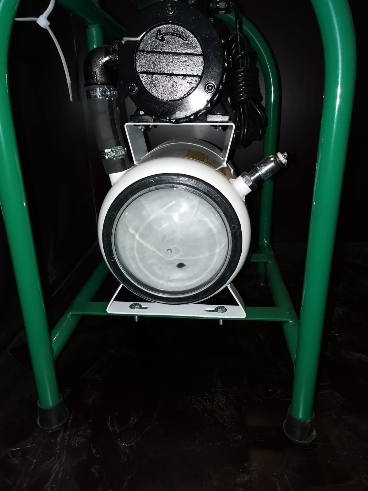 Komplektā: vakuuma tvertne, regulators, vakuuma pulkstenis, statīvs ar vakuuma pieslēgumu
