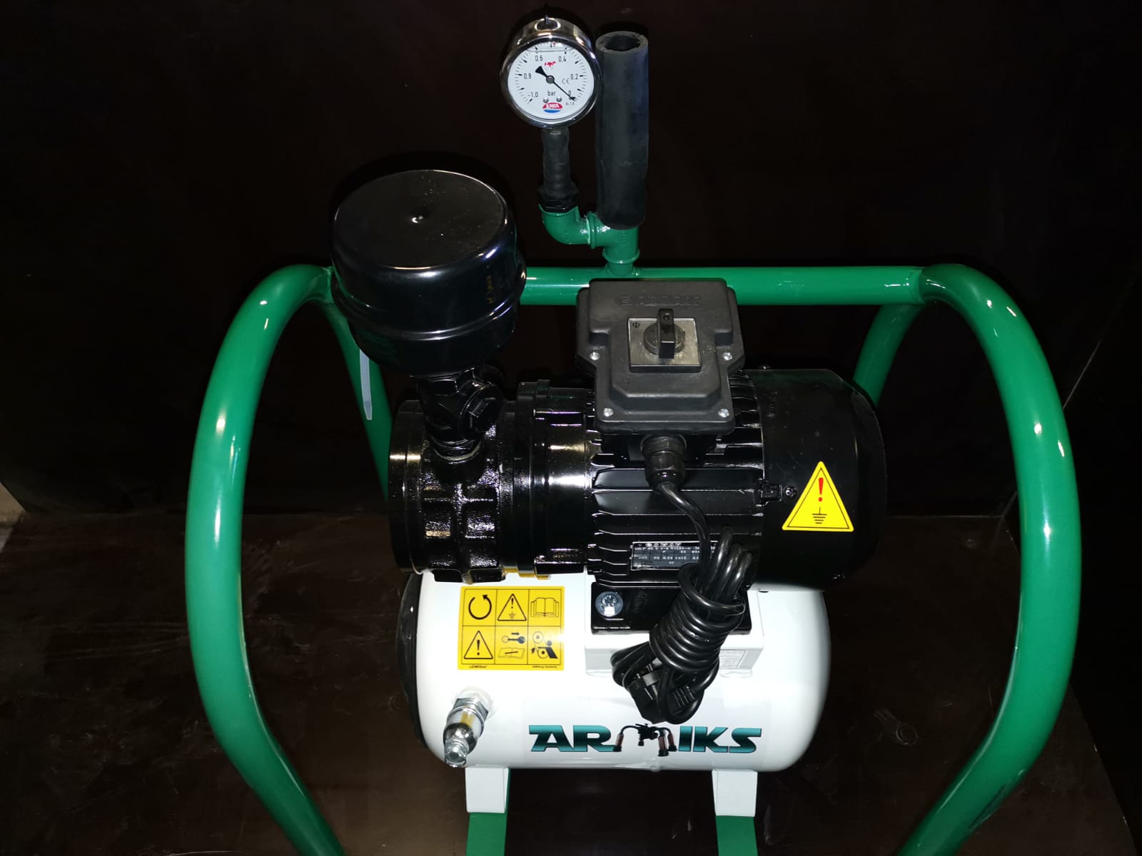 Spēcīgs sausais vakuumsūknis ar jaudu 0.55 kW, apgriezieniem 1400 rpm un ražību 240 L/min. Ierīce darbojas ar taisno piedziņu no elektromotora bez siksnām, nodrošinot stabilu un ilgmūžīgu darbību.