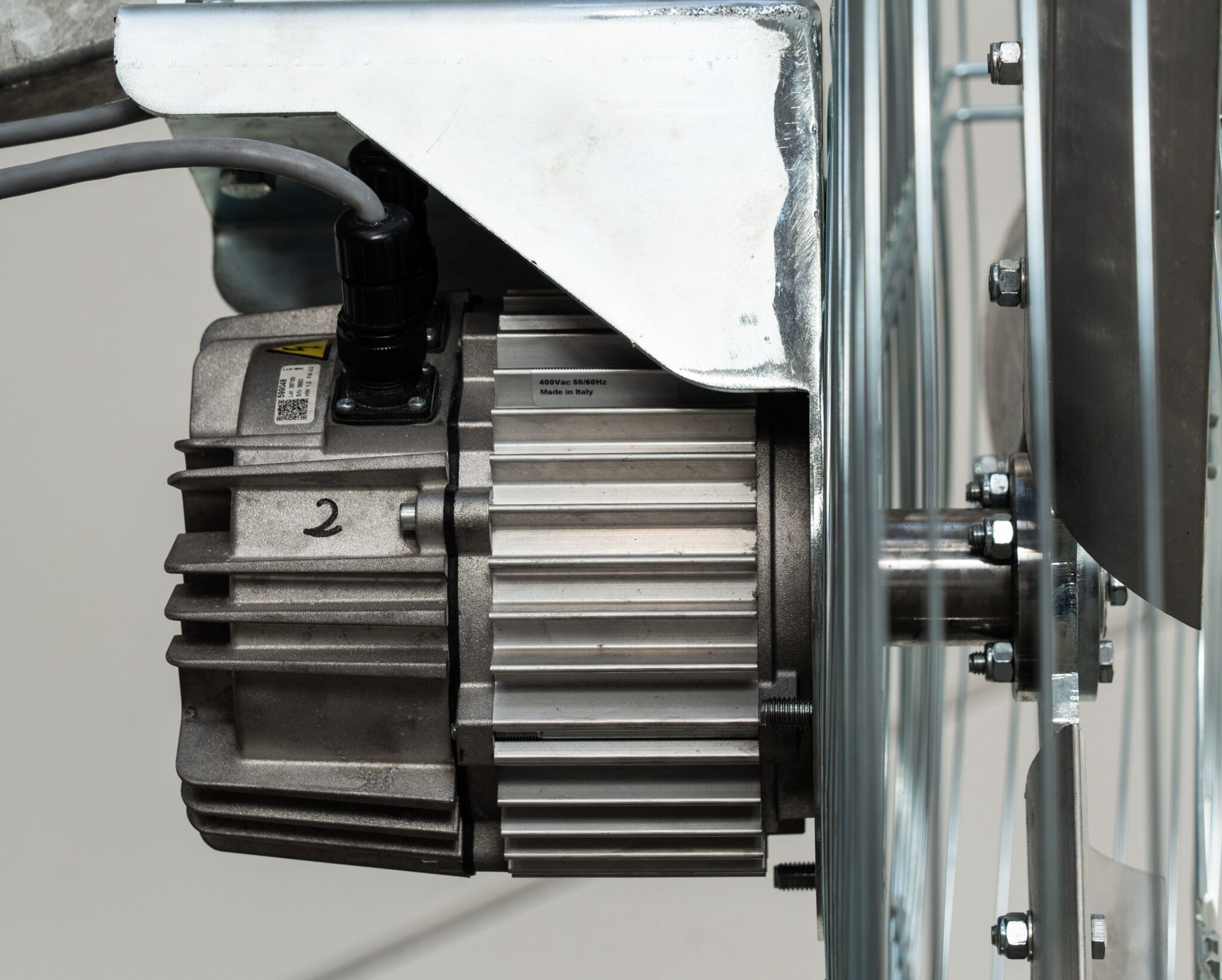 Jaunās paaudzes ventilators ar tiešo piedziņu bez reduktora un jaudīgu 1.5 kW 3-fāžu asinhrono motoru, kas nodrošina līdz pat 122 000 m³/h gaisa plūsmu. Pateicoties kompaktajam dizainam (1,2 m spārnu diametrs), tas ir ideāli piemērots arī zemiem griestiem vai šaurākām telpām.